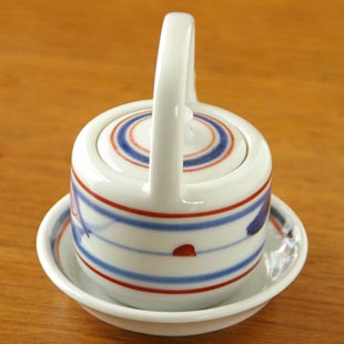 ![]() 小さな急須のように、とってがついた形が特徴の醤油さし。赤と藍色のラインが印象的。小さいけど砥部焼らしさがつまっています。 ![]() なめらかな白磁に赤と藍色のラインが映える。 ![]() まっすぐに伸びたラインは熟練の技。そのなかでやさしい手描きならではのやわらかい絵付けが味わい深い。 ![]() 蓋をとったところ。丁寧な手仕事。 ![]() 傾けても蓋がすべりにくいつくり。 |