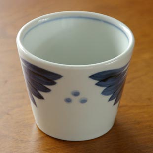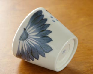 ![]() 白磁に深みある砥部焼らしい藍色の染付けが印象的なそばちょこ。大胆な菊もようの絵付けが2ヶ所描かれています。 ![]() 2ヶ所の菊もようの間にはちょこんと丸い絵付け。 ![]() そばちょこの中とふちの部分にラインが引かれ、全体を引き締めています。厚手のなめらかな白磁。 ![]() 持ちやく、口当たりもいいのでカップとしても重宝します。 はがきと比べて。 |