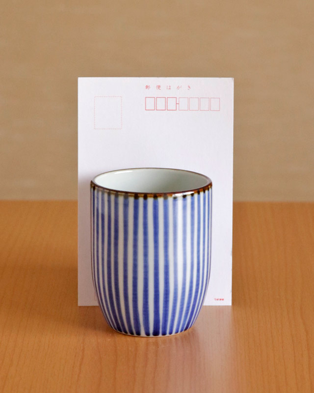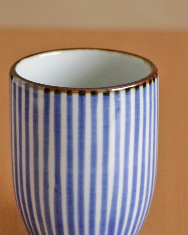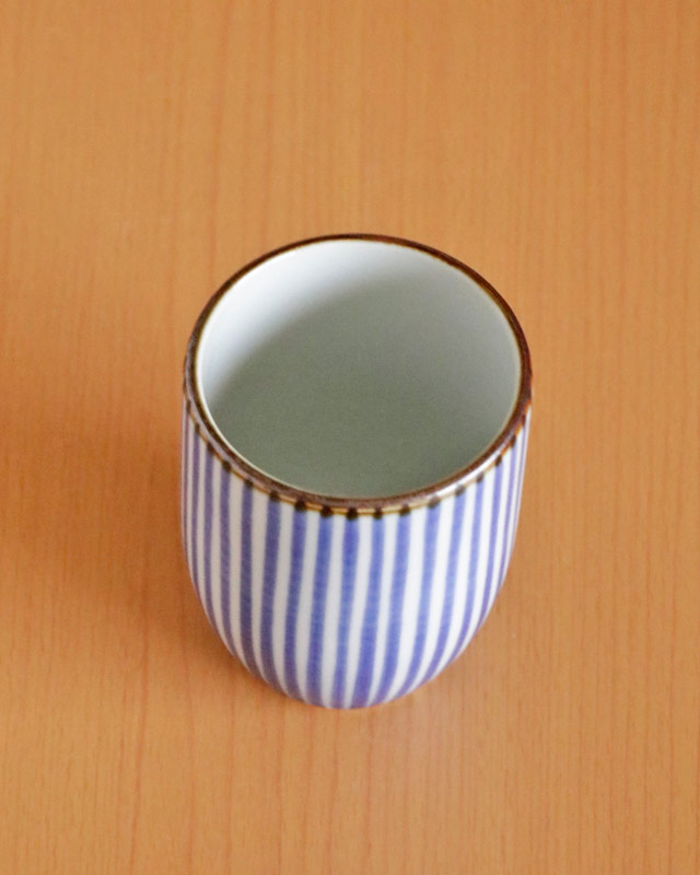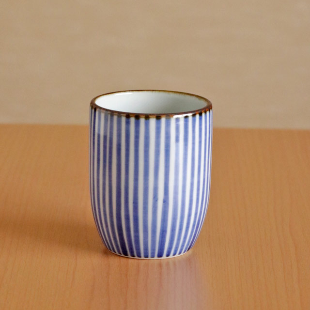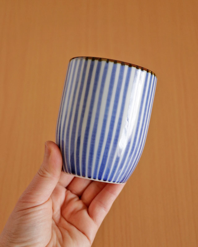 ![]() 普段使いにもぴったりの少し大きめのお湯呑。 ![]() 1本1本丁寧に描かれた藍色のライン。高さは9.5cmくらい。 ![]() ぽってりとしたお湯呑みですので口当たりなめらかです。 ![]() 口径は7.5cmくらいです。 ![]() 底の部分はやわらかな丸み。 ![]() ![]() 底の直径は5cmくらいです。 |