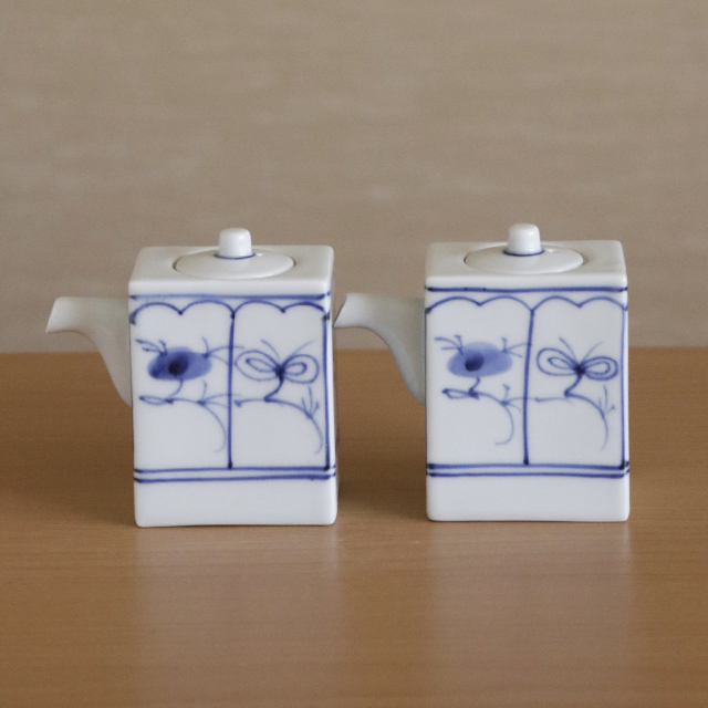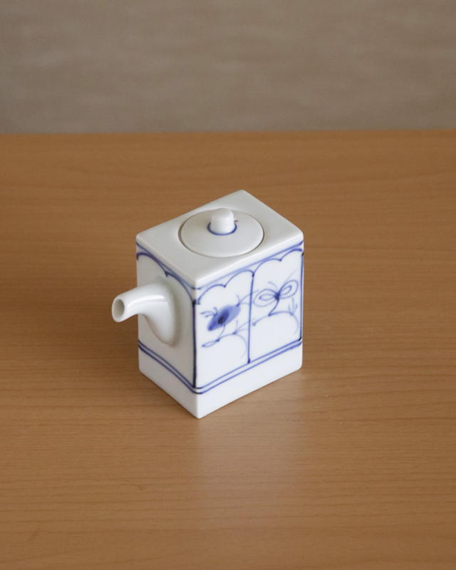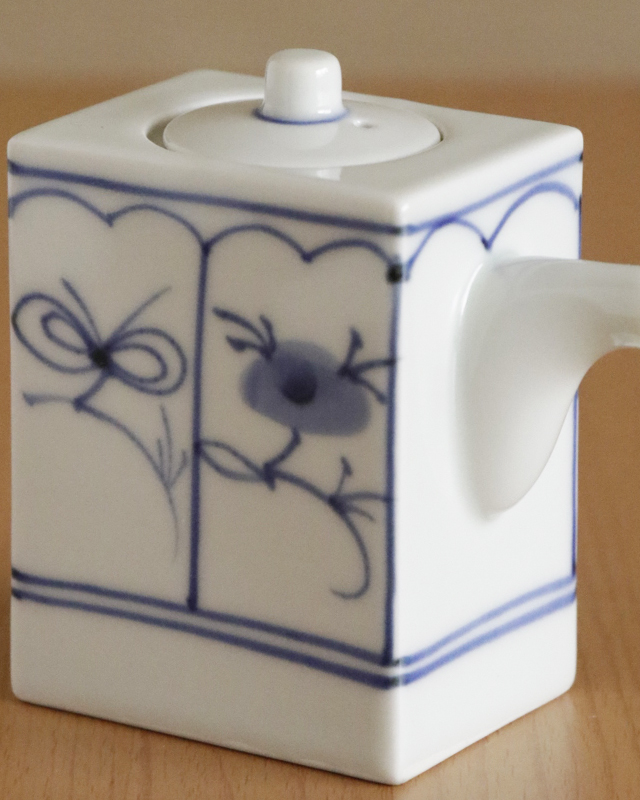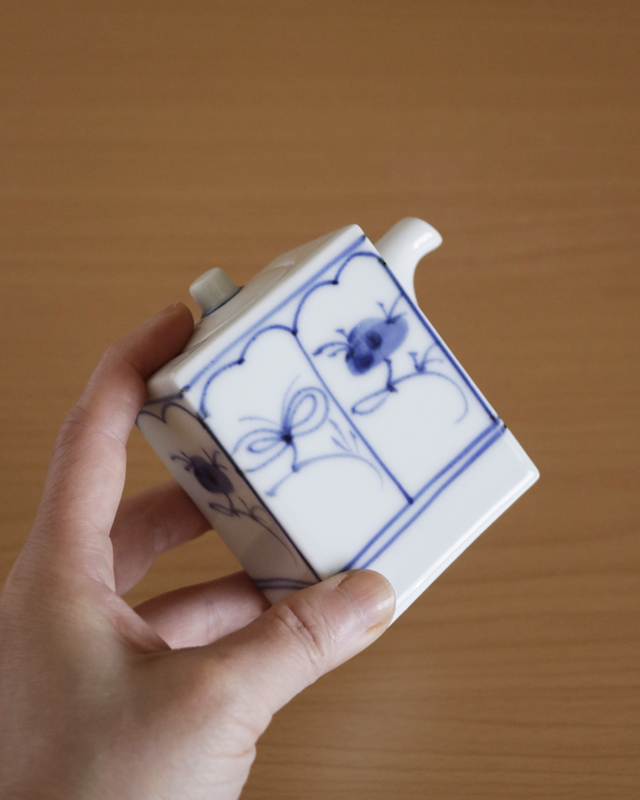 | サイズ | 6.2cm×4.5cm(注ぎ口込み幅8.5㎝) 高さ9㎝(蓋付)前後 受け皿:径7.5㎝×高さ1.5㎝ |