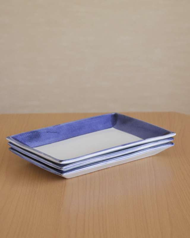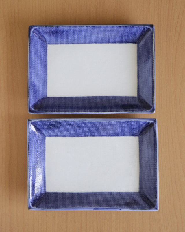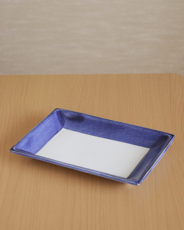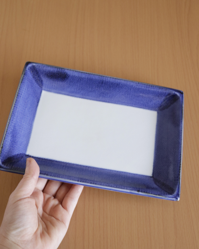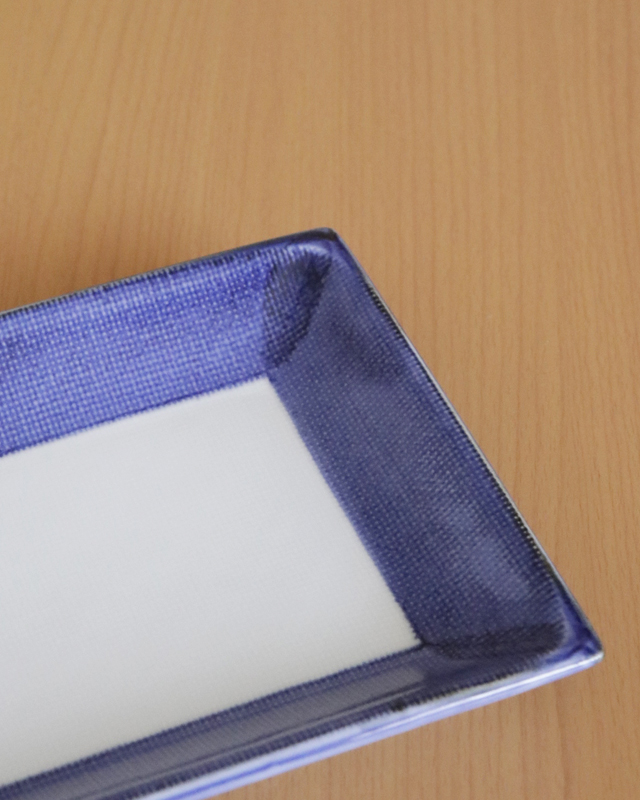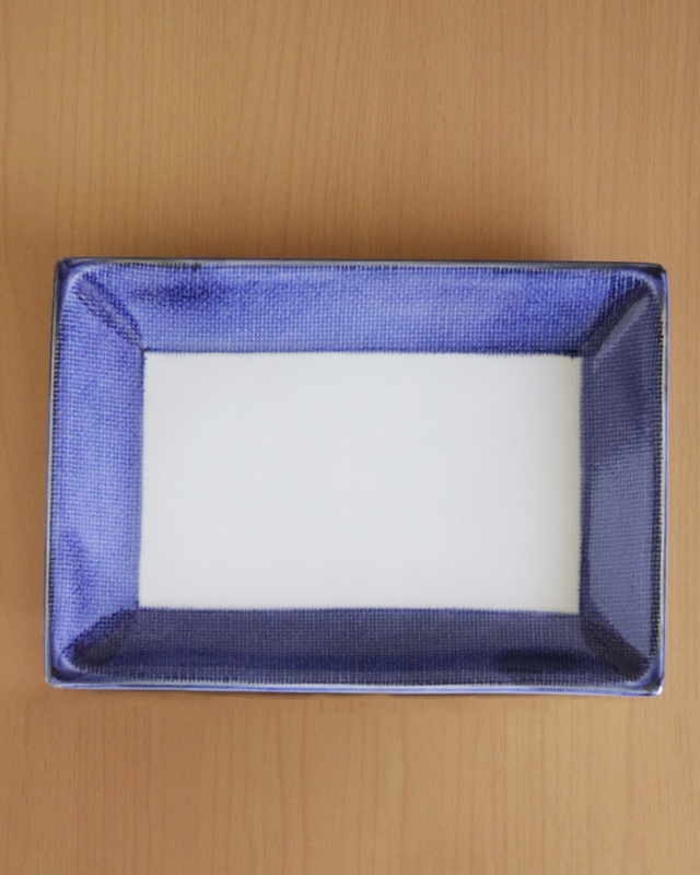| 商品名 | ふち藍色の長角布目皿(7.5寸) | 商品番号 | B1036 |