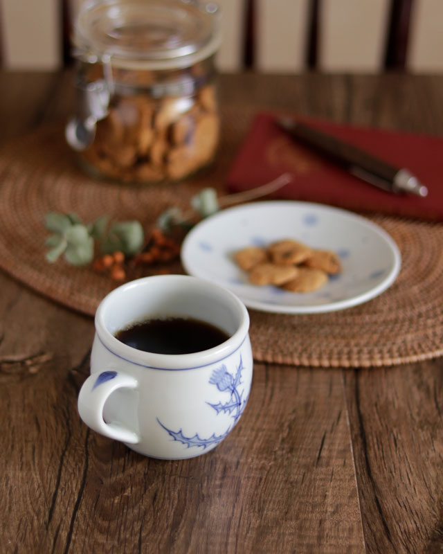 ![]() 普段使いのマグカップとして愛用したくなるかたち。 「ミルクカップ」という名前のとおり、包み込むようなふっくらとした形に、ミルクやカフェオレもとても良く似合います。 氷も入れやすいかたちなので、冷たいお茶にも。お気に入りのマグカップかあるだけで、豊かな気持ちになります。 ふくよかな形だから、スープカップとしてもおすすめ。 ![]() ほんのり青味掛かったなめらかな白磁。 丸みある縁ですので口当たりもなめらかです。 ![]() 手描きならではの藍色の濃淡に、あたたか味を感じます。 ![]() カップひとつひとつ手描きらしい違いがあります。 ![]() これくらいの大きさ。厚手ですのでほどよい重みがあります。 ![]() はがきと比べて。 |