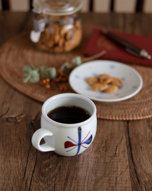 | 色・特徴 | なめらかな白磁 藍色の染付け、赤の上絵付け 窯出し時期などによって多少の違いがございます |