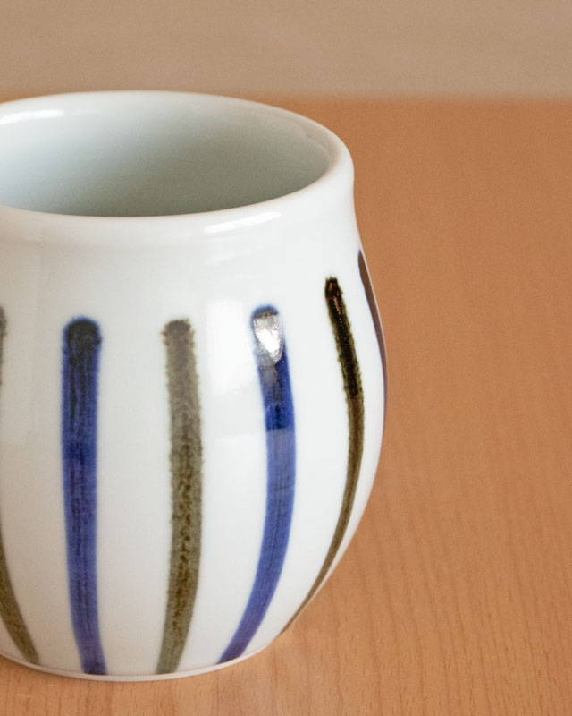 | 色・特徴 | なめらかな白磁 藍色と茶色の染付け 窯出し時期などによって多少の違いがございます |
