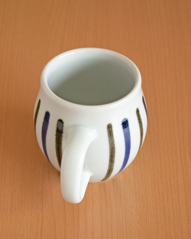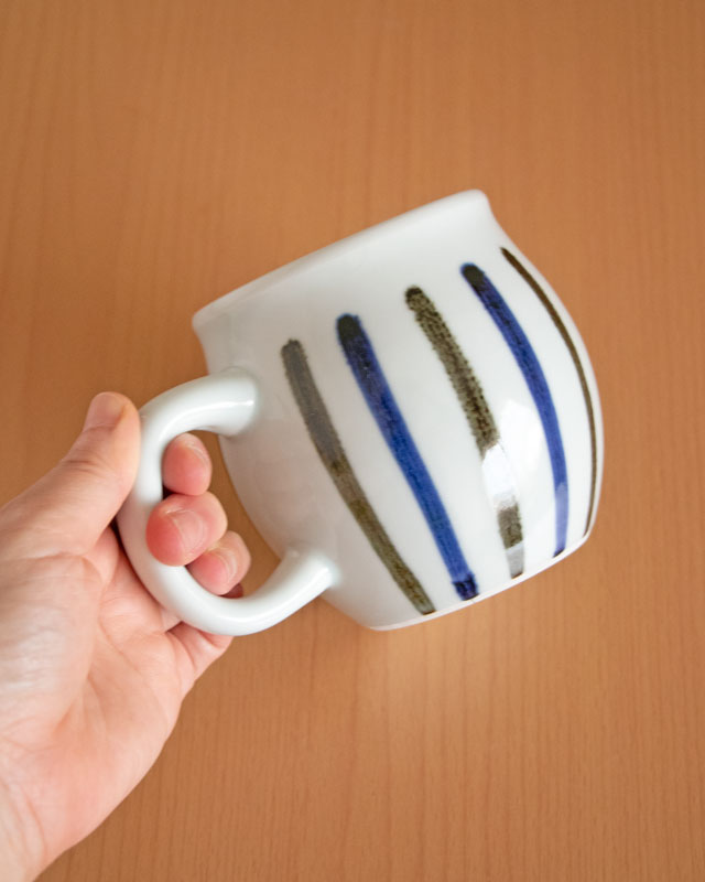![]() 梅山窯さんのなかでも特別大きなサイズのマグカップ。 ![]() 高さは10cmくらい。 ![]() 持ち手の幅は1.5cm~1.8cmくらい。 ![]() マグカップの周りに藍色の茶色の縦ラインが交互に描かれています。 ![]() カップのかたちは膨らみある樽型です。 ![]() ![]() 口径は8.2cm~8.5cmくらい。ひとつひとつ口径に個体差があります。 ![]() 底の直径は6.5cmくらいです。 底には梅山窯さんの「梅」の窯印。 |