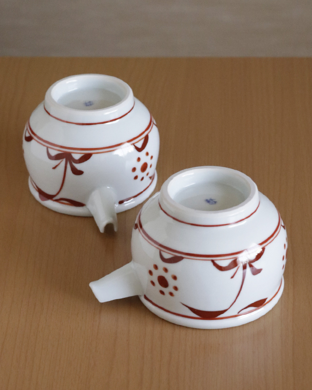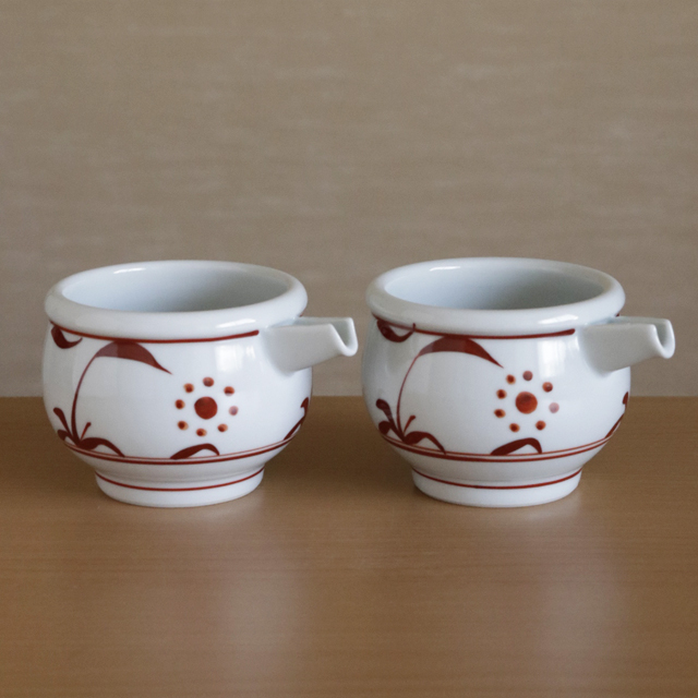 | 色・特徴 | ほんのり青味掛かったなめらかな白磁 赤の上絵付け 窯出し時期などによって多少の違いがございます |