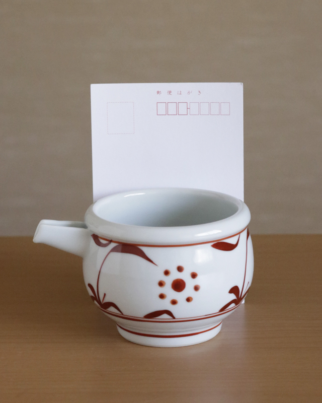 ![]() 冷やしうどんなど、うつわに盛った冷たい麺類に掛ける「つゆ入れ」としても活躍します。 その他にも鍋の際のぽん酢などを入れる道具としてもおすすめ。食卓がお洒落な印象となります。 ![]() 酒器としても素敵。徳利とはまた違ったまろやかな日本酒を楽しむことができます。 ![]() 柔らかな筆使いに手描きならではの味わい深さを感じます。 ![]() 絵付けの濃さやなど、ひとつひとつ手描きらしい違いがあります。 ![]() これくらいの大きさです。片手で持つことができるくらいのサイズ。 ![]() はがきと比べて。 |
