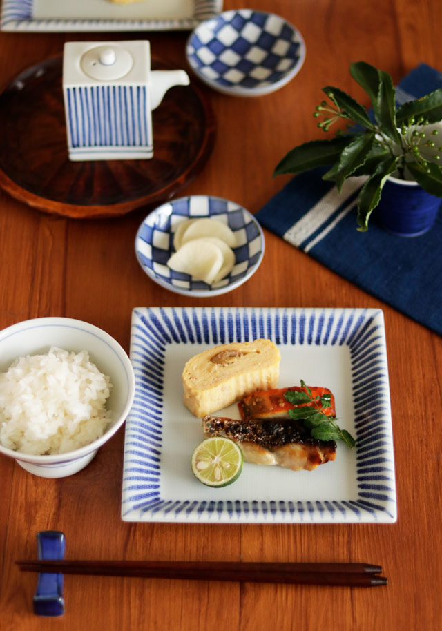 ![]() 平らな部分が広めですので、焼き魚や卵焼きなど数種類の料理を盛り付けて朝食やランチなどに重宝するかたちです。 刺身やてんぷらも良く似合います。 ![]() 和の雰囲気の角皿ですが、洋食も盛っても素敵です。 ![]() サンドイッチやパンの角皿としても♪ < 角皿が並ぶと食卓にメリハリが出来るのでおすすめです。 ![]() 素地が柔らかいうちに布地をあてて表面を布目状にしていますが、釉薬が掛かっているので光沢があります。 布目に染みた藍色の染付が雰囲気ある味わい。 ![]() はがきと比べて。 ![]() これくらいの大きさ。砥部焼らしく厚手のお皿ですので、ある程度の重みがあります。 |
