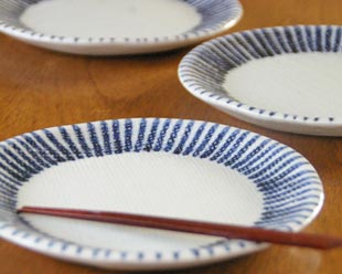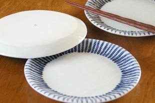![]() 高台のないの平たいお皿。 ![]() 砥部焼らしく厚みがあります。重みもありますが、丈夫なので気兼ねなく使えます。 ![]() 表面はつるんとしていますが、布目がついて味わいがあります。 |
