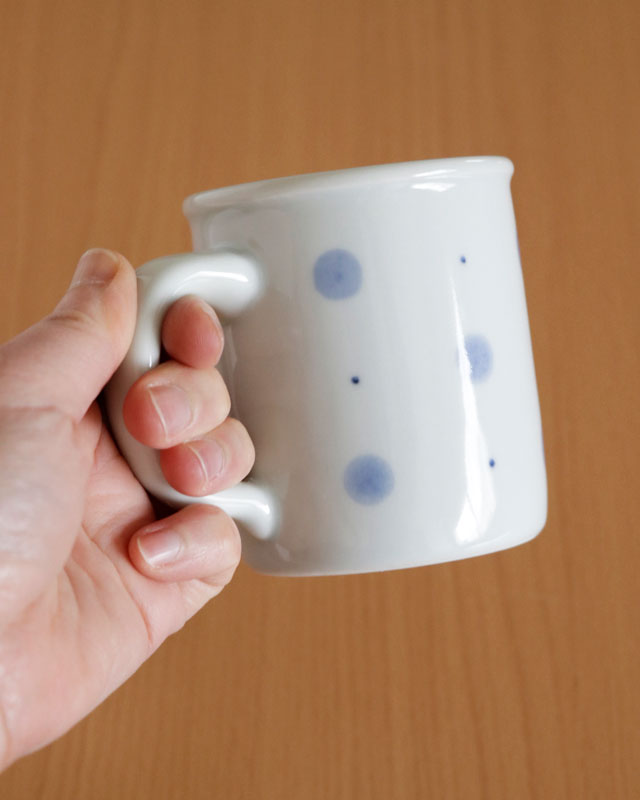 ![]() すとんとした円柱形の定番マグカップ。 毎日のマグカップにおすすめの使いやすい形です。 ![]() 持ち手の幅は1.5cm弱くらいです。 持ちやすいように作られた持ち手は少し太めです ![]() 高さは9cmくらい。 ![]() 手描きらしい味わいある水玉とドットの組み合わせが素敵。 ![]() 直径は7.5cmくらいです。ほんのり青味掛かったなめらかな白磁です。 ![]() 底の直径は7.2cmくらいです。 底には梅山窯さんの「梅」の窯印 |