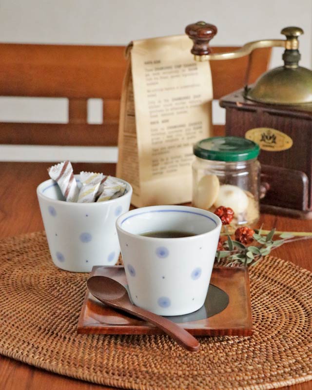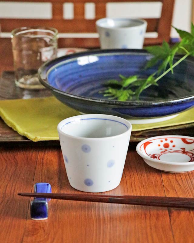 水玉ドットの 藍の濃淡を活かした 梅山窯 ばいざんがま |