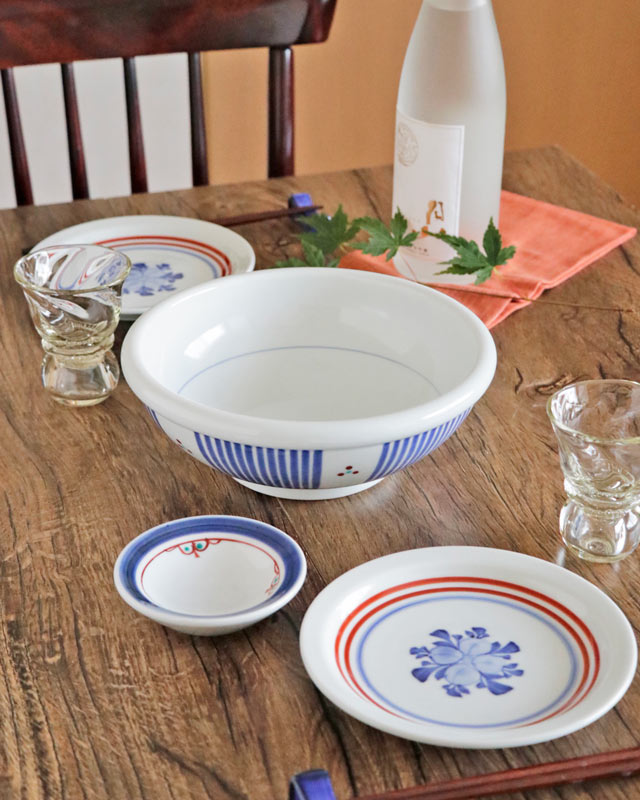| 色・特徴 | なめらかな白磁 藍色の染付けに赤・緑の上絵付け 窯出し時期などによって多少の違いがございます |