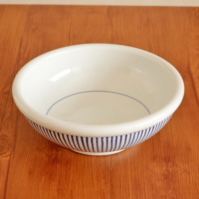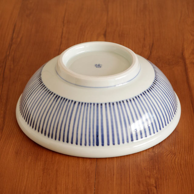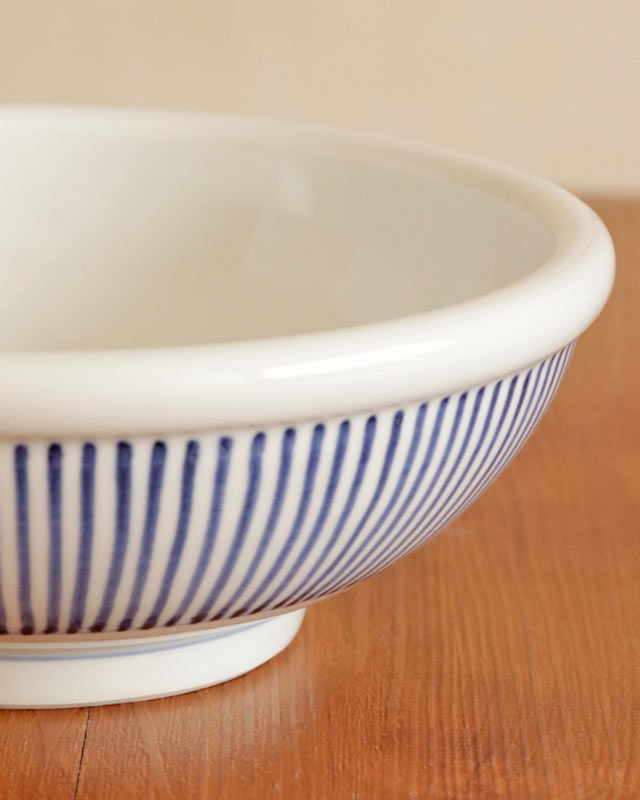![]() 玉縁と呼ばれる丸みある縁が特徴の直径22cmの深みあるうつわ。 ![]() 高さは8cmくらい。白磁に映える藍のラインがすっきりとした美しさ。 ![]() うつわの内側は藍のラインが引いてあるのみですので、砥部焼らしいなめらかな白磁がより引き立ちます。 ![]() 高台の直径は10.5cmくらい。 ![]() ぽってりと丸みあるかたち。 ひとつひとつ描き方や藍色の濃さなど手仕事らしい違いがあります。 ![]() これくらいの大きさ。砥部焼らしく厚手ですので、ある程度の重みがあります。 |