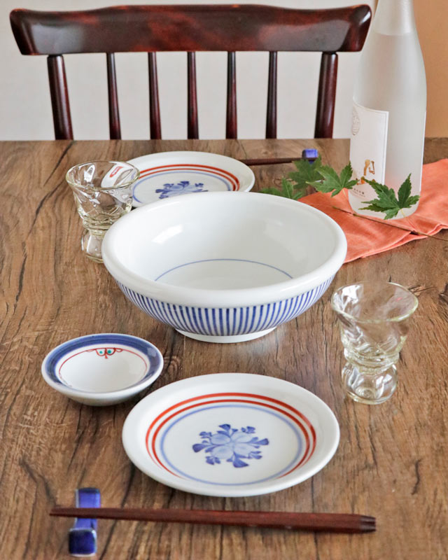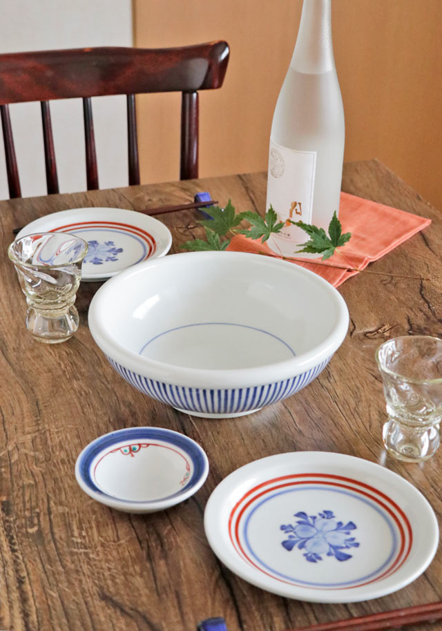 | 色・特徴 | なめらかな白磁 藍色の染付けに赤の上絵付け 窯出し時期などによって多少の違いがございます |