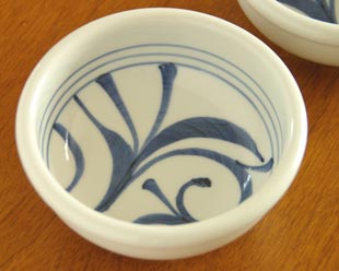 器の中にはおおらかに潔く描かれた絵付け。「ひとつからくさ」と言われる絵付け。砥部焼の白磁によく似合います。