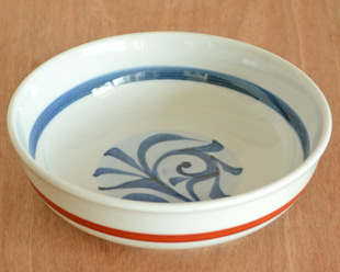 【砥部焼 梅山窯】赤線底からくさの平鉢(6寸)○