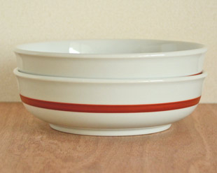 器の高さは5.5cmくらい。外側には8mm幅の赤いラインが引かれています。