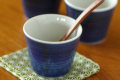 砥部焼・梅山窯 藍色のそばちょこにデザートを