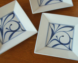「からくさの角銘々皿」が気に入り、角プレート(6寸)も買い求めました。和風モダンな感じで、とてもいいです。