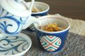![]() 使い方やお料理によって、和にも洋にも、シックにもカジュアルにもなります。 ![]() 酢の物などをいれて、小鉢としても重宝♪ そばちょこは、万能な器として多用途に使えるのも魅力。アイスに茶碗蒸しに・・といろいろな使い方をお楽しみいただけます。 ![]() カップとしてコーヒーなどを入れても素敵♪ ![]() 濃淡ある藍色はいかにも手仕事らしい味わい。赤と緑のコントラストがきれい。黒いラインが絵柄全体を引き締めています。 ![]() 底には梅山窯さんの「梅」の文字。梅山窯さんの「そばちょこ」の高台は釉薬(ゆうやく)が掛かっているので、つるりとしています。 ![]() はがきと比べて。 |