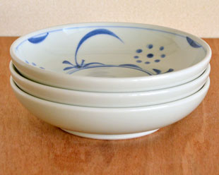 器ひとつひとつ、藍色の濃淡や筆の運びなどに手描きらしい微妙な違いがあります。