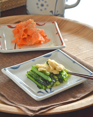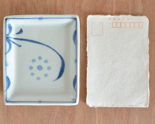 ![]() おひたしなど普段のおかずを盛り合わせても美味しそうに引き立つので、朝食の際にも重宝します。小さめの切り身の焼き魚や卵焼きなどにも。 ![]() 洋食も似合います。サラダやオードブルを盛っても素敵♪ 角皿が食卓にならぶと、丸皿とは違った印象になってお洒落です。 ![]() 色違いの「赤太陽の角皿(4.6寸)」もあります。ペアで揃えてプレゼントとしても♪ ![]() 3枚重ねても3cm程の高さとなります ![]() これくらいの大きさ。砥部焼らしく厚手のお皿ですので、程よい重みがあります。 ![]() はがきと比べて。 |