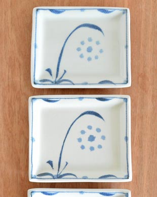 ![]() 14.5cm×12cmの小さめの布目角皿。 ![]() 高さは1.3cmくらい。ゆるやかに少しフチが立ち上がっていますので、少々汁気のあるお料理にもお使いいただけます。 ![]() きちんとした形の角皿ではなく、手づくりらい四角形です。平たい部分は11cm×8cmくらい。 手描きらしいやさしい筆使いで、梅山窯さんの人気の絵柄「太陽」が描かれています。 ![]() 裏側の底は10cm×8cmくらい。釉薬(ゆうやく)が掛かっていないマットな底面です。梅山窯さんの「梅」の窯印。 ![]() 底面はマットですが、立ち上った側面は釉薬が掛かっているのでつるりとしています。 ![]() 素地が柔らかいうちに布地をあてて表面を布目状にしています。布目に染みた藍色の染付は雰囲気ある味わい。 ![]() 手づくりの角皿ですので、ひとつひとつ形がまったく同じはありません。 筆使いや藍色の濃さなどに手描きらしい違いがあります。 |