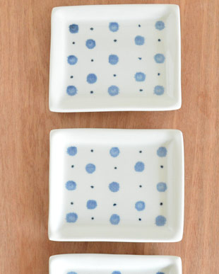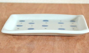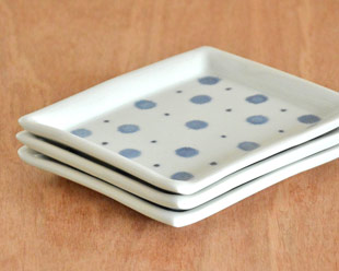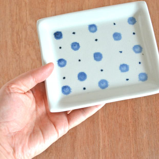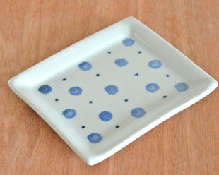 水玉ドットの布目角皿 爽やかな水玉が 梅山窯 ばいざんがま |