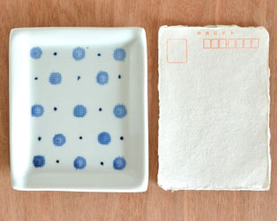 ![]() 取皿としても活躍してくれるサイズ。 おひたしなど普段のおかずを盛り合わせても美味しそうに引き立つので、朝食の際にも重宝します。小さめの切り身の焼き魚や卵焼きなどにも。 ![]() 洋食も似合います。サラダやオードブルを盛っても素敵♪ 角皿が食卓にならぶと、丸皿とは違った印象になってお洒落です。 ![]() デザートを盛っても爽やか♪ ![]() 同じ絵柄の「水玉のコップ」と組み合わせても♪ ![]() これくらいの大きさ。砥部焼らしく厚手のお皿ですので、程よい重みがあります。 ![]() はがきと比べて。 |