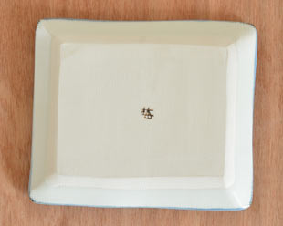 きちんとした形の角皿ではなく、手づくりらい四角形です。平たい部分は11cm×8cmくらい。