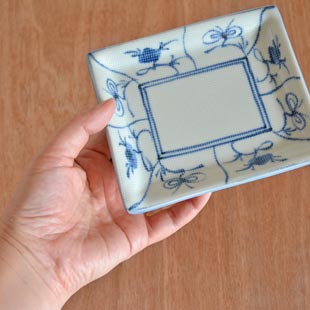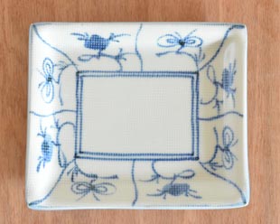 【砥部焼 梅山窯】なずなの布目角皿(4.6寸)○