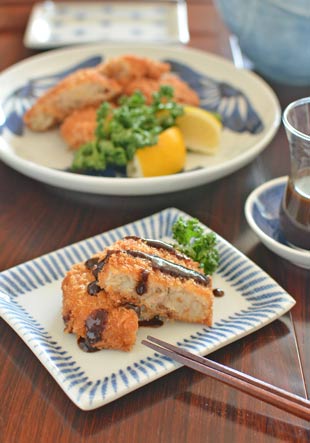 シンプルな藍色のラインですが手描きらしい筆使いなので味わいがあります。額縁のように料理を彩り、美味しそうに引き立ててくれます。