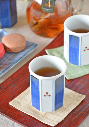 ![]() なめらかな白磁だから緑茶がきれいに引き立ちます。 ![]() フリーカップとして、紅茶やコーヒーなどをいただいても♪ ![]() 赤い絵付けのなかに、わずかに入った緑が差し色となりお茶碗を彩ります。 ![]() 手づくりですので、お湯呑ひとつひとつ藍色の濃さなどに微妙な違いがあります。 ![]() ひとまわり大き目の「みつ紋の八角湯呑(中)」(左)もあります。ペアでのギフトにもおすすめです。 ![]() 持ちやすく、おさまりのいい形です。厚手なので丈夫です。 |