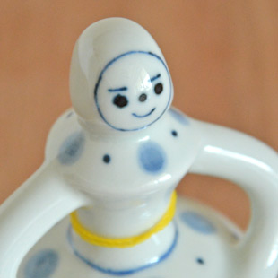 ![]() 小さな飾り物として気兼ねなく部屋に飾って楽しむことができます♪ ![]() おすまし顔した、お行儀良い立ち姿。 ![]() 心癒される、ほのぼのとした表情。 ![]() 手描きらしい筆使いに、ぬくもりを感じます。 藍色の濃淡で表現された水玉模様がなめらかな白磁によく映えます。 ![]() 手描きですので、ひとりひとり表情に個性があります。衣裳の模様も手描きしい違いがあります。 ![]() 衣裳違いの仲間たち♪並べて飾っても楽しい。 ![]() これくらいの大きさ。 |
