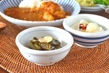 ![]() ひとり分のお漬物を盛ってもちょうどいいサイズ。 和え物や酢の物にもぴったり。和洋中と料理を選ばないので、毎日活躍する器です。 ![]() ヨーグルトなどのデザートを入れても素敵です♪ しゅうまいや餃子の際に酢醤油をいれたり フライなどの際のケチャップやソースなどを入れてもちょうどいい大きさ。 ![]() 砥部焼らしい、まあるい玉ぶちも特徴。お料理をおいしそうに囲んでくれます。 ![]() 手描きらしいあたたかみある絵付けです。 ![]() ひとつひとつ手描きらしい違いがあります。 ![]() 3個重ねると8.5cmくらいの高さ。すっぽりとは入りませんが 重ねても安定感があります。 |