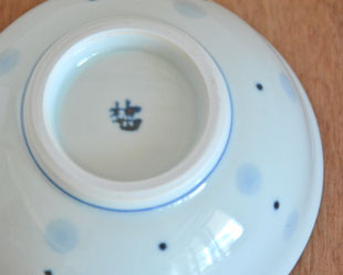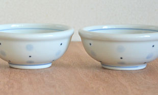 水玉ドットの玉ぶち鉢 爽やかな水玉もようは 梅山窯 ばいざんがま |