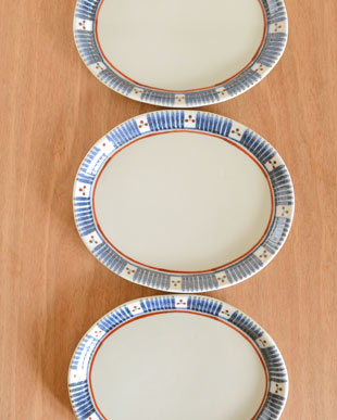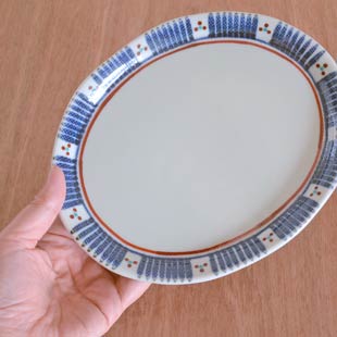 ![]() 揚げ物やハンバーグなど、付け合せが少ない場合のひとり分のメイン皿としても活躍します。 その他に焼き魚のお皿として、切り身の焼き魚や卵焼きやおひたしなど普段のおかずを盛り合わせて、朝食の際にも重宝します。 ![]() ナポリタンにも。縁の絵付けが額縁のように料理を引き立ててくれます♪ フラットなお皿ですので、小鉢をセットしてサラダやオードブルを盛っても素敵♪ 楕円皿が食卓に並ぶと、丸皿とは違った印象になってお洒落です。 ![]() ひとつひとつ微妙に形が違いますので、ぴったりとは重なりませんが、3枚重ねても3cm程の高さです。 ![]() これくらいの大きさ。砥部焼らしく厚手のお皿ですので重みがあります。 ![]() はがきと比べて。 |
