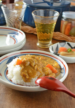 ![]() 直径18.5cmくらいの程よい深みあるかたちの中皿。 ![]() 縁が立ち上がった形が特徴。汁気のあるお料理にもお使いいただけます。 ![]() お皿の中心の比較的平らな部分の直径は13cmくらいです。きりりとした藍と赤のラインと手描きらしいやさしい筆使いの組み合わせが魅力です。 ![]() 高台の直径は11cmくらい。高台の周りには藍色のラインが引かれています。 裏には梅山窯さんの「梅」の窯印。 ![]() 3枚重ねると高さ5.5cmくらいの高さ。重なりがいいのでコンパクトに収納できるのもうれしい限り♪ ![]() 筆使いや絵付けの濃さなどに手描きらしい違いがあります。 ![]() これくらいの大きさ。砥部焼らしく厚手ですので、重みがあります。< |