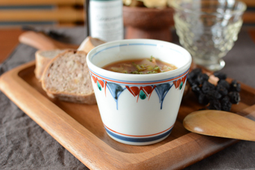 ![]() ときにはスープカップとしても。 持ちやすく口当たりもいいので、お酒やお茶やコーヒーなどをいただくカップとしても重宝します。 ![]() そばちょこは、万能な器として多用途に使えるのも魅力。小鉢にデザートカップに茶碗蒸しに・・といろいろな使い方をお楽しみいただけます。 使い方やお料理によって、和にも洋にも、シックにもカジュアルにもなります♪ ![]() 絵付けの濃淡やにじみは手描きならでは。 ![]() そばちょこは重なりがいいのもうれしいところ。3個重ねると12cmくらいです。 ![]() はがきと比べて。 |
