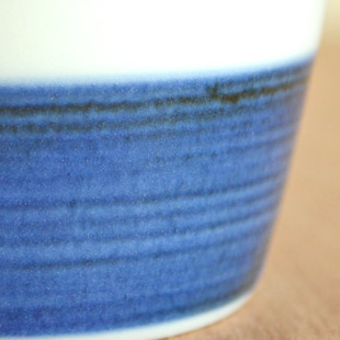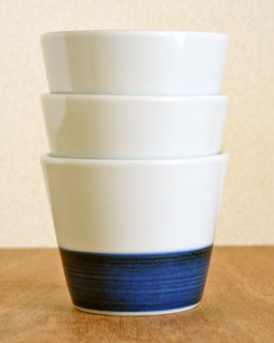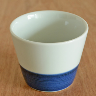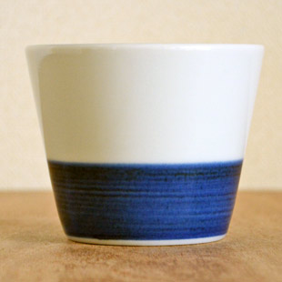 ![]() 厚手のなめらかな白磁のそばちょこ。シンプルな藍色の染付けが白磁によく映える印象的な絵付け。 ![]() 高さは7cmくらい。そばちょこの深さは6cmくらいです。 白磁と青巻が半々ではなく、白磁の部分は4cmで青巻の部分は2.7cmくらい。絶妙なバランスです。 ![]() 口径は8.5cmくらいです。ほんのり青味掛かった白磁。 ![]() 底の直径は5.5cmくらいです。 ![]() 底には梅山窯さんの「梅」の窯印。梅山窯さんの「そばちょこ」は、テーブルに当たる部分に釉薬(ゆうやく)が掛かっているのでつるりとしています。 ![]() そばちょこひとつひとつ、手描きらしい微妙な違いがあります。 ![]() はがきと比べて。 |