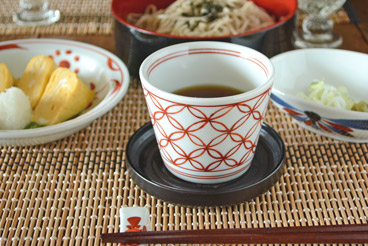 ![]() お蕎麦や素麺をいただくときに欠かせない蕎麦猪口。赤一色の「赤太陽」の絵付けは食卓に彩りを添えてくれます。 持ちやすく、口当たりもいいので、お茶やコーヒーなどをいただくカップとしても重宝します。 ![]() そばちょこは、万能な器として多用途に使えるのも魅力。小鉢にデザートカップに茶碗蒸しにご飯ものに・・といろいろな使い方をお楽しみいただけます。 使い方やお料理によって、和にも洋にも、シックにもカジュアルにもなります♪ ![]() 手仕事らしい赤絵の濃淡。手描きならではの味わいを感じます。 ![]() そばちょこは重なりがいいのもうれしいところ。3個重ねると12cmくらいです。 ![]() 大きすぎず、小さすぎす定番の大きさ形です。 ![]() 同じ絵柄で色違いの「宝つなぎのそばちょこ」もあります。ペアで揃えてのギフトもおすすめです。 |