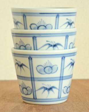![]() 持ちやすく、口当たりもいいので、お酒やお茶やコーヒーなどをいただくカップとしても重宝します。 ![]() そばちょこは、万能な器として多用途に使えるのも魅力。デザートカップに小鉢にスープカップに茶碗蒸しに・・といろいろな使い方をお楽しみいただけます。 使い方やお料理によって、和にも洋にも、シックにもカジュアルにもなります♪ ![]() 幾何学的な絵柄ですが、手描きらしい筆使いに味わいを感じます。懐かしさも感じるぬくもりある絵付け。 ![]() そばちょこは重なりがいいのもうれしいところ。3個重ねると12cmくらいです。 ![]() 大きすぎず、小さすぎす定番の大きさ形です。 ![]() 色違いの「色絵梅格子のそばちょこ」(左)と「鉄ごす格子のそばちょこ」(中央)もあります。 |