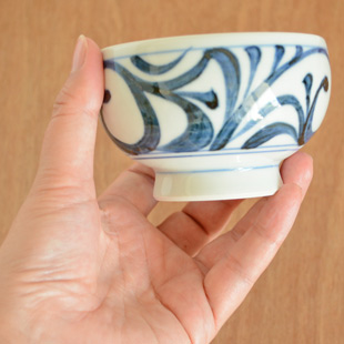 ![]() 緑茶が美しく引き立つなめらかな白磁。ふくよかなでお洒落なかたちだからお客様のおもてなしのお湯呑としても重宝します。 少し直径が大きめのお湯呑ですので、お茶をいただく際は右手で持って左手を添えたが飲みやすいです。 ![]() お湯呑ですが、一見「小鉢」にも見えるような浅めのかたちですので、お料理を盛っても素敵♪ 上品な小鉢として、酢の物にきんぷらに和え物に、またデザートに・・といろいろな使い方をお楽しみいただけます。 使い方やお料理によって和にも洋にも、シックにもカジュアルにもなります♪ ![]() 手描きらしい藍色の濃淡に味わいを感じます。 ![]() すっぽりとは重なりませんが、重ねても安定感はあります。2個重ねると9cmくらいの高さです。 ![]() はがきと比べて。 |