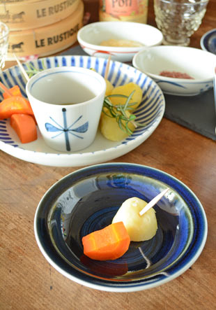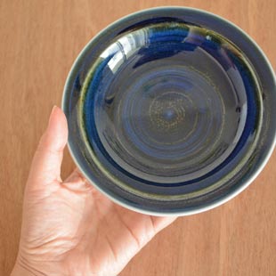 藍色の縁付深皿 使いやすいほどよい深み。 梅山窯 ばいざんがま |