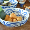![]() 3人分くらいの揚げ物や煮物にも重宝♪サラダを盛っても素敵です。また、2人分くらいの素麺の鉢としてもおすすめ。 和食はもちろん洋食を盛ってもモダンな印象になる絵柄ですので和洋中といろいろな料理に。 ![]() お寿司を盛っても豪華な印象に♪直径に対して平らな部分が割と広めなので深皿としての使い方もお楽しみいただけます。 また、フルーツを盛る鉢としてキッチンやカウンターでも活躍。 ![]() 手描きらしい味わいの濃淡ある藍色にぬくもりを感じます。 ![]() ひとつひとつ藍色の濃淡や筆使いなどに手仕事らしい違いがあります。 ![]() 2個重ねると9.5cmくらいの高さ。 |