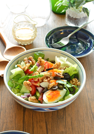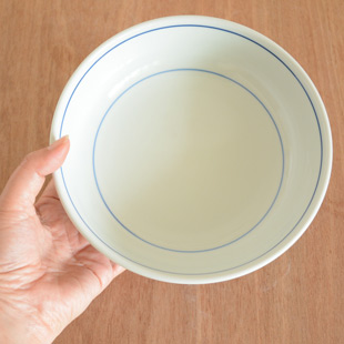 ![]() 2~3人分くらいのサラダや煮物にも重宝。 その他にも1人分の素麺や冷やしうどんの鉢としてもおすすめ。和食はもちろん洋食を盛ってもモダンな印象になる絵柄ですので和洋中といろいろな料理に♪ ![]() 数人分の揚げ物を盛ってテーブルへ。直径に対して平らな部分が割と広めなので深皿としての使い方もお楽しみいただけます。 その他にもフルーツを盛る鉢としてキッチンやカウンターでも活躍。 ![]() 手描きらしい味わいの濃淡ある絵付けにぬくもりを感じます。 ![]() ひとつひとつ絵付けの濃淡や筆使いなどに手仕事らしい違いがあります。 ![]() これくらいの大きさです。 |