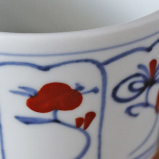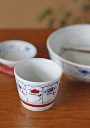 | 色・特徴 | なめらかな白磁 藍色の染付け、赤の上絵付け 窯出し時期などによって多少の違いがございます |