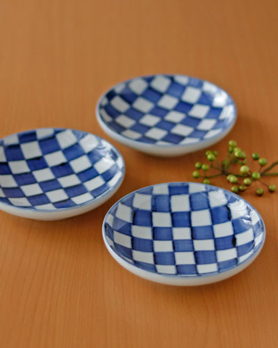 市松の取皿 印象的な市松が素敵な 梅山窯 ばいざんがま |