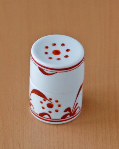 ![]() 直径5.5cm×高さ8cmの蓋が付いた可愛らしい楊枝入れ。 ![]() なめらかな白磁に映える印象的な赤い絵付けが素敵。 ![]() 蓋部分にも太陽の絵付けの一部が描かれています。 ![]() 本体の高さは5.5cmくらい。 ![]() 上からみたところ。 ![]()