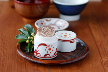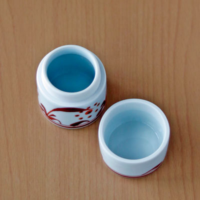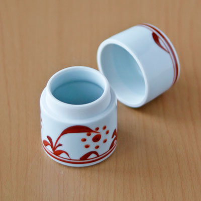 | 色・特徴 | ほんのり青味掛かったなめらかな白磁 赤の上絵付け 窯出し時期などによって多少の違いがございます |